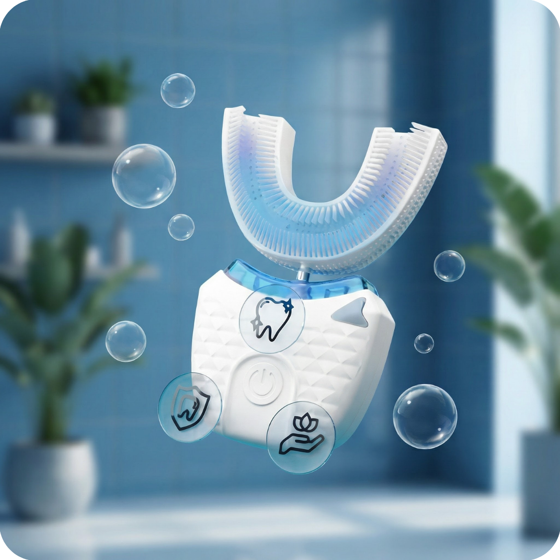 Die 360°-U-Form erreicht alle Zahnflächen gleichzeitig, während sanfte Vibrationen Plaque lösen – ganz ohne manuellen Druck.
